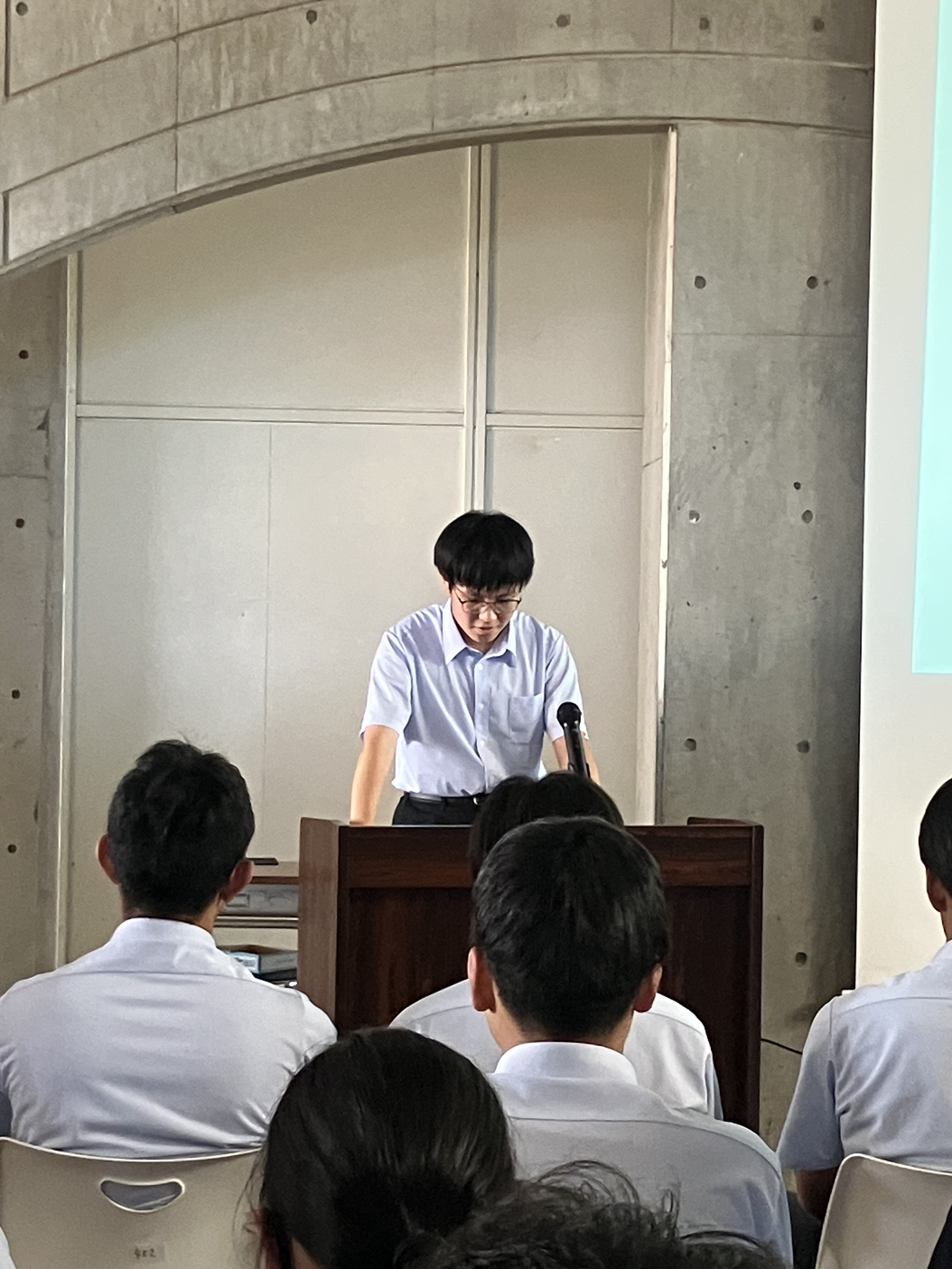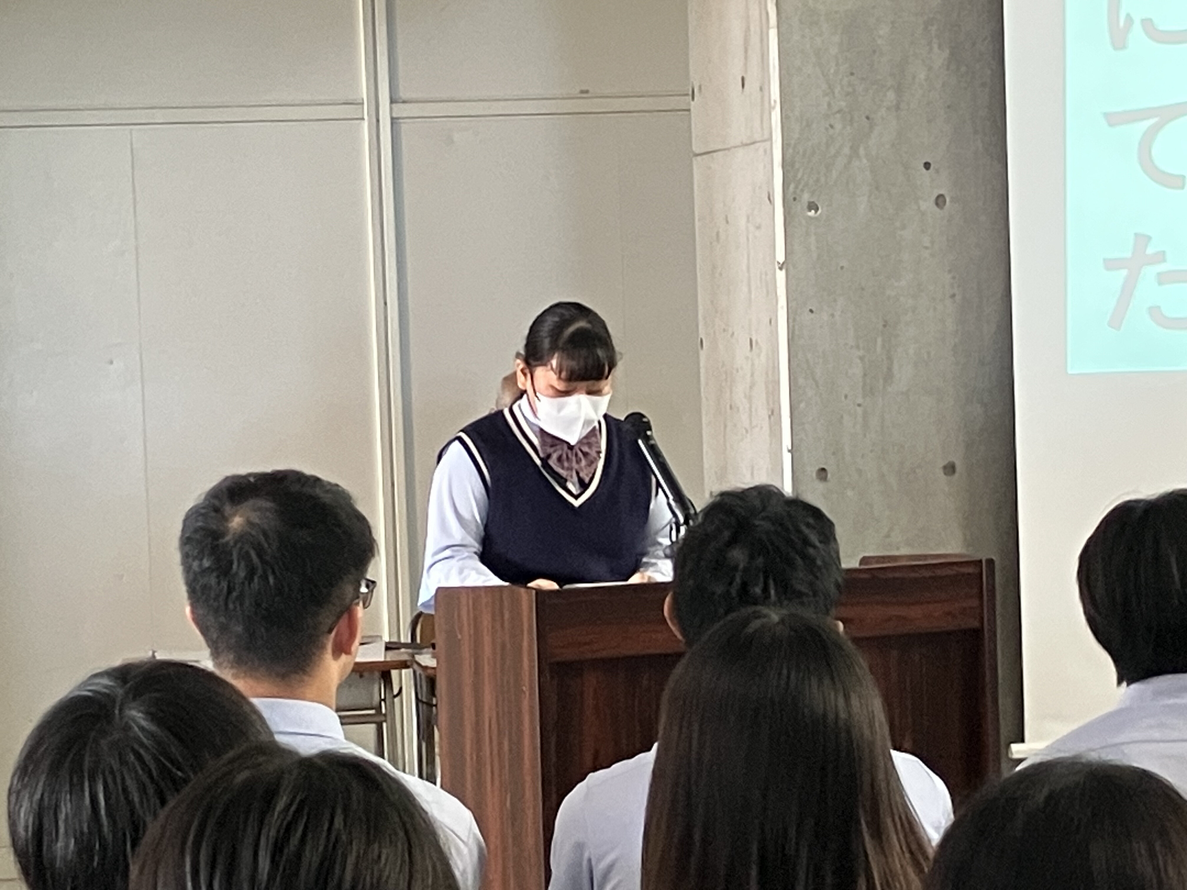 100人程の観客の前で、自分の考えを自分の言葉で伝えるのは本当に勇気がいることです。きっと発表の直前まで緊張していたと思いますが、それでも一歩前に出て声を届けた姿に感動しました。準備の段階でたくさん練習したこと、緊張を乗り越えて最後までやりきったこと、そのすべてが大きな成長につながったはずです。