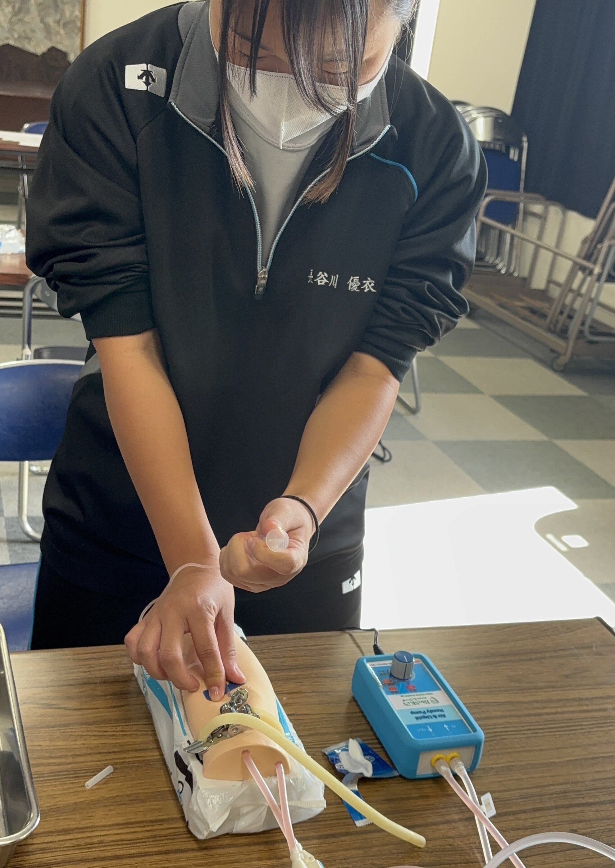 採血の実習では、針や器具の扱い方、患者さんへの声かけなど、緊張感のある中で看護師さんの技術のすごさを肌で感じました。私も初めて採血をさせていただき、あの緊張感の中で採血をしている看護師さんはすごいと思いました。