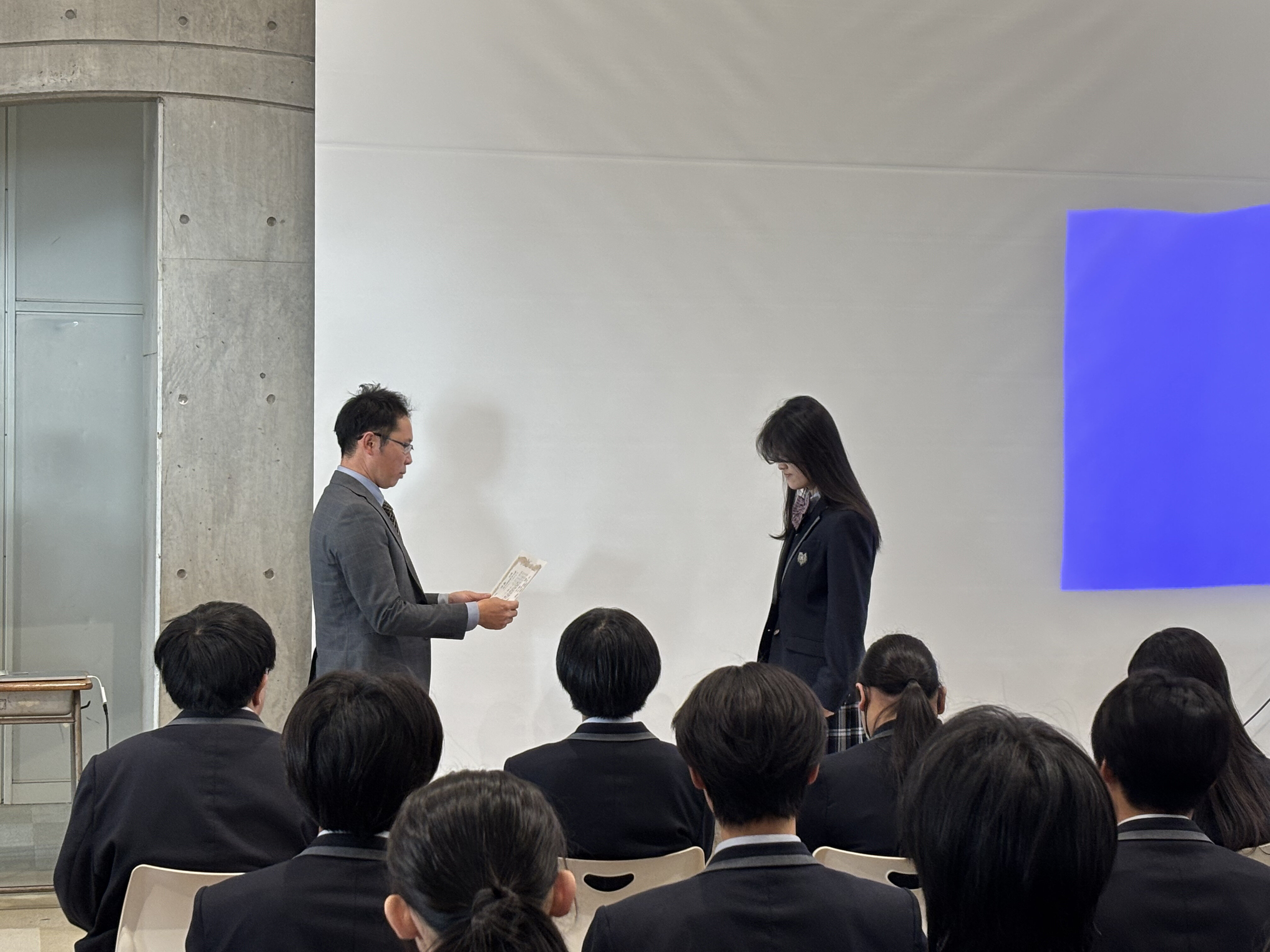 学期末表彰では、皆勤賞、学業優秀賞、資格取得など、さまざまな分野で努力を積み重ねてきた生徒たちが表彰されました。一人ひとりの頑張りが形になって表れる時間は、見ていてとても嬉しいものです。