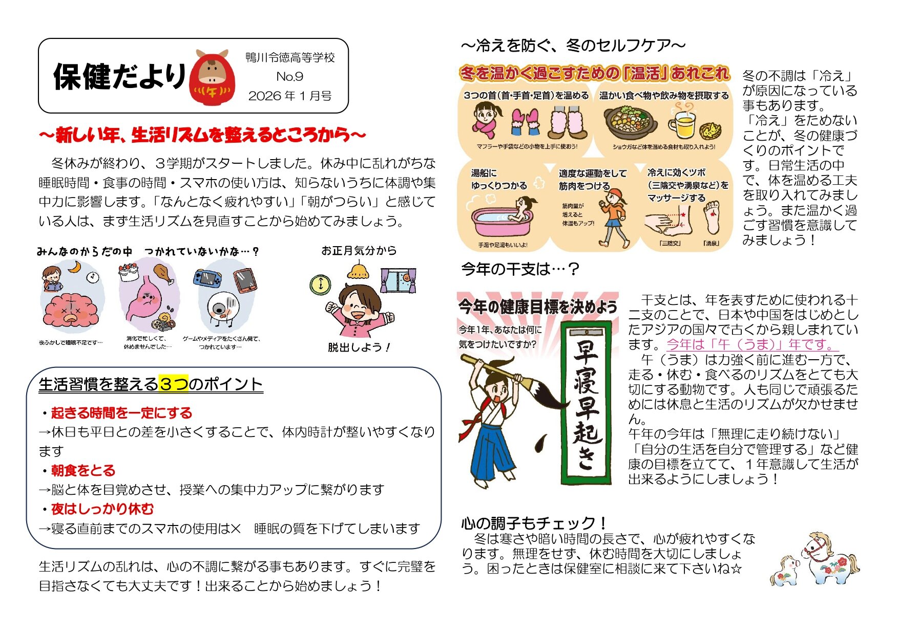 【2026年1月16日更新】保健だより1月号 千葉県鴨川市 南房総 日本一海が近い高校 海が一番近い高校 日本一海が近い学校