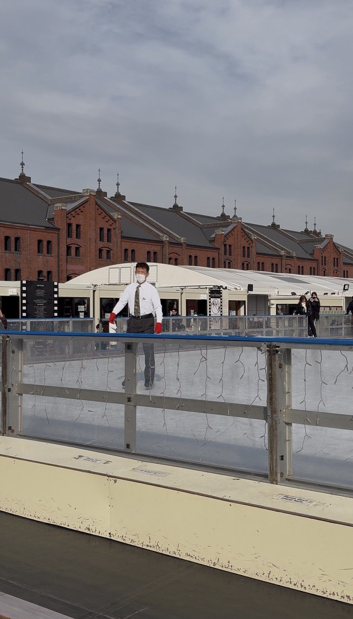 そのあとは赤レンガ倉庫に行き、お土産などを見終わって外に出たら、アイスリンクが設置されており生徒が滑っている!!留学生がすいすい滑っているのをみて、隣で加藤先生が「俺もいっちゃおうかな~」と!前にも滑ったことがあるらしい加藤先生。リンクに登場!!昔の感覚を思い出すのに少し苦労している様子でした笑